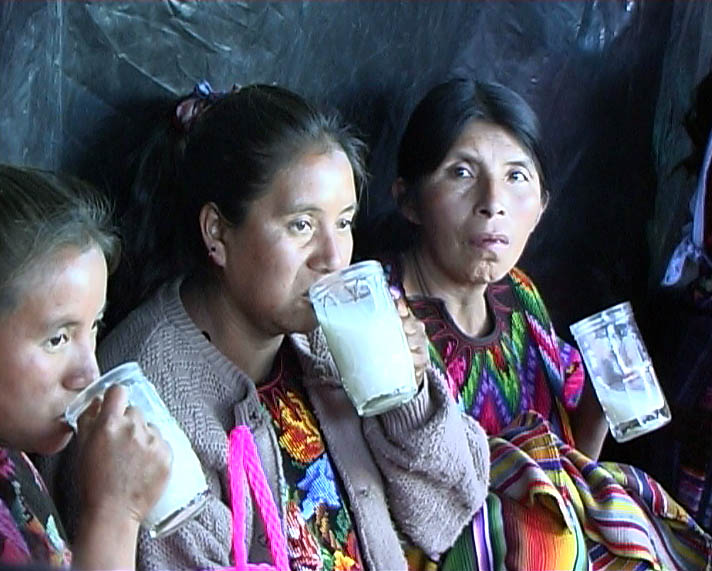 Auf der Treppe der Dorfkirche Santo Tomás knien gläubige Quiché, umweht vom Rauch zahlreicher Weihrauchopfer, und richten ihre Gebete an die alten Götter aber auch die neuen christlichen (Christus, die Mutter Gottes und die Heiligen). |