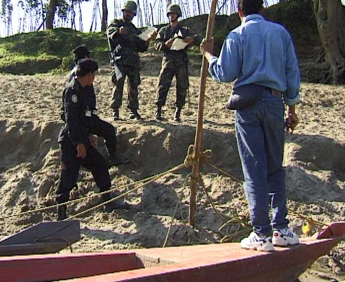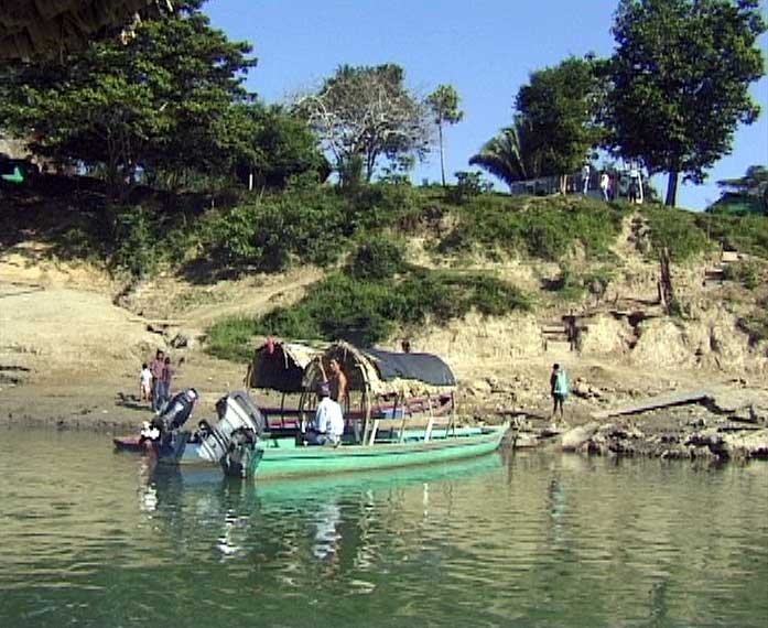 Die Mayastätte Yaxchilan lässt sich nur über eine mehr- stündige Bootsfahrt auf dem Rio Usumacinta oder mit einem Buschflugzeug während der Trockenzeit erreichen. Hier sind Aufnahmen vom Jan.1998, knapp 2 Jahre nach Ende des Bürgerkrieges in Guatemala. |